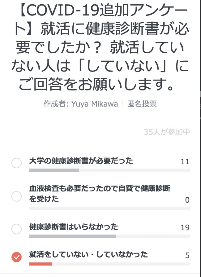 【追加アンケート】就活に健康診断書が必要でしたか?